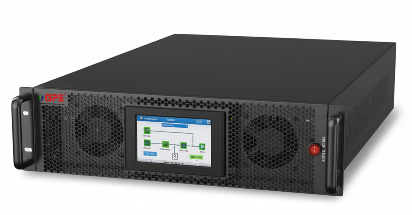 This UPS system with True Online Double-Conversion (VFI-SS-111) and DSP technology ensures high performance and pure sine wave output. It features 3-stage battery charging, rack/tower convertible design, and unity power factor (1.0, kVA = kW). It supports frequency conversion, ECO mode, EPO, parallel expansion (up to 4 units), and configurable battery setup (30–50 units).
